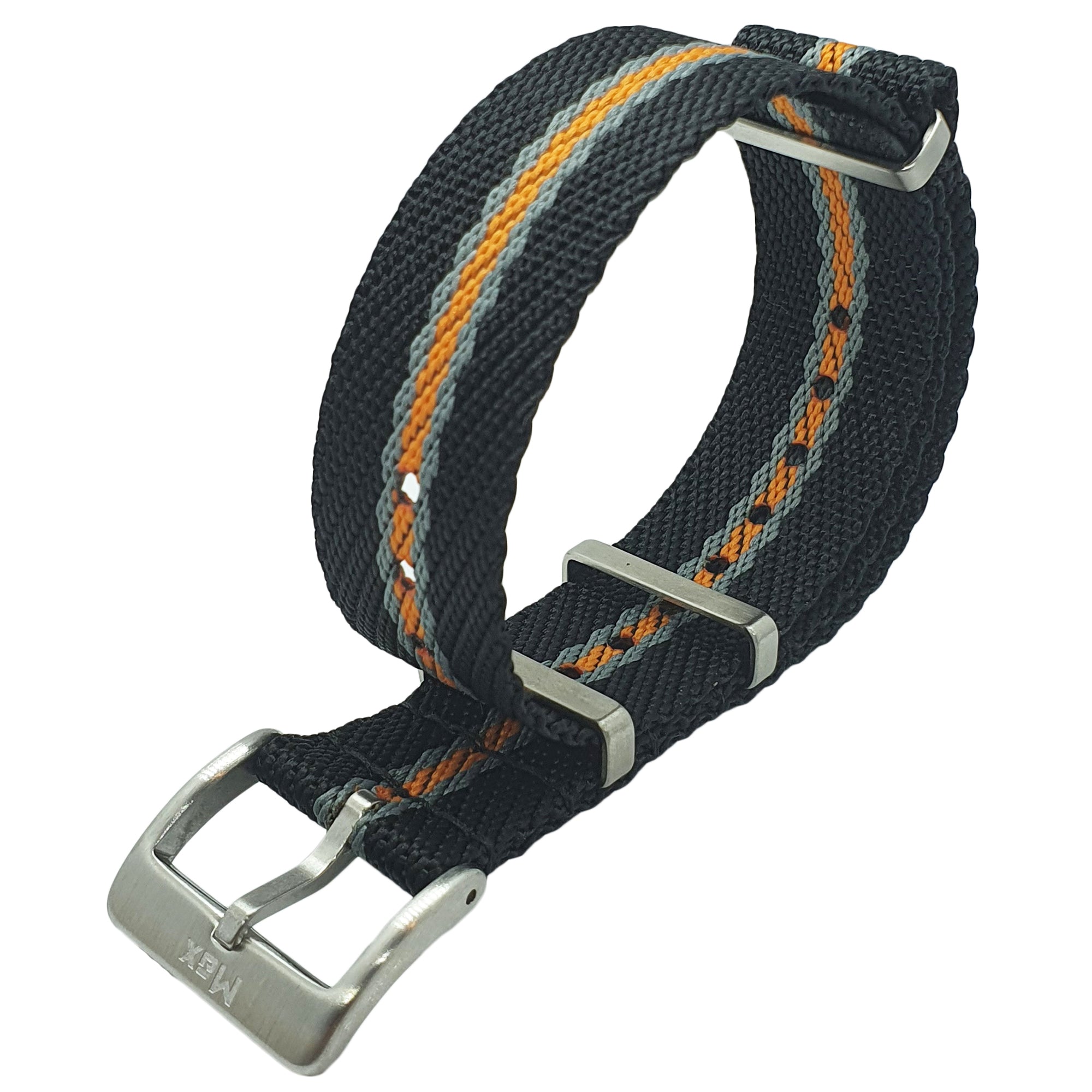 Max Premium Nylon NATO Watch Strap Black/Orange/Grey