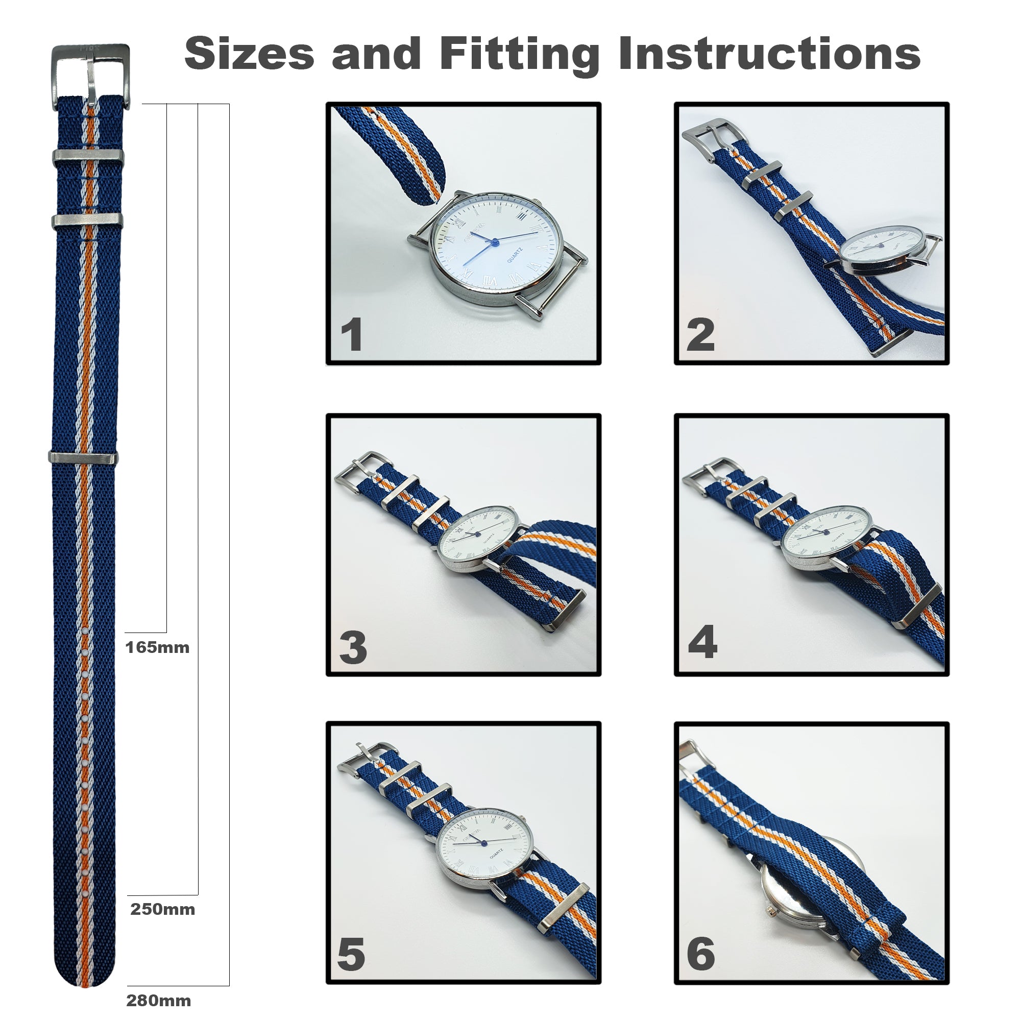 • Different Sizes & Colours - Currently available in widths 20mm & 22mm with 3 colour options. Please make sure you chose the correct width before ordering. See Images to show you how to measure your watch strap.